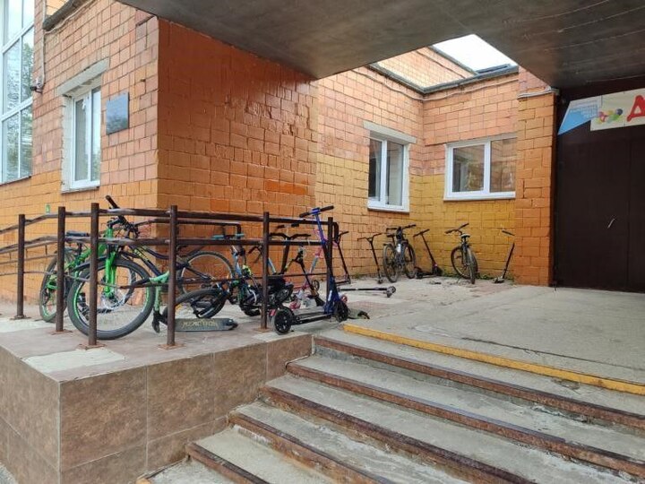 Теперь ученики могут оставлять свои велосипеды и самокаты на специально отведенной площадке, расположенной рядом со входом в школу, что позволяет избежать загромождения крыльца и обеспечивает безопасное хранение.