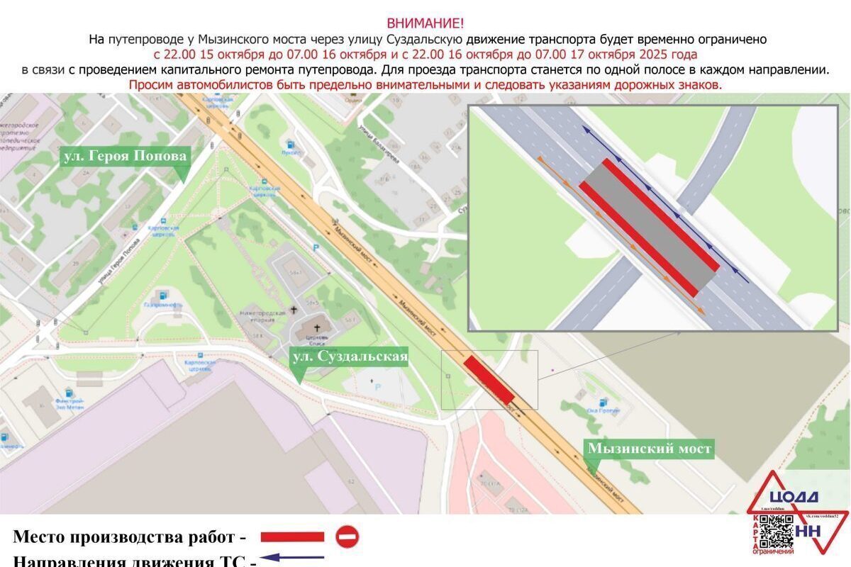 Временные ограничения движения транспорта затронут путепровод Мызинского моста, сообщает пресс-служба городской администрации Нижнего Новгорода.