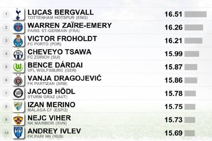Благодаря этому достижению, юный игрок из Нижнего Новгорода оказался в рейтинге наряду с перспективными футболистами из таких клубов, как лондонский «Тоттенхэм» и ПСЖ.