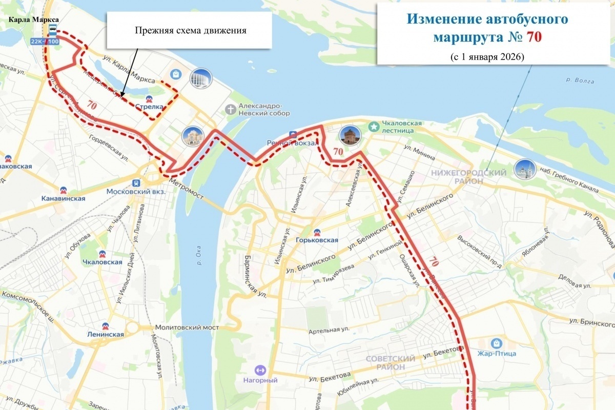 С начала 2026 года нижегородский автобусный маршрут № 70 станет короче, сообщили в Центре развития транспортных систем.