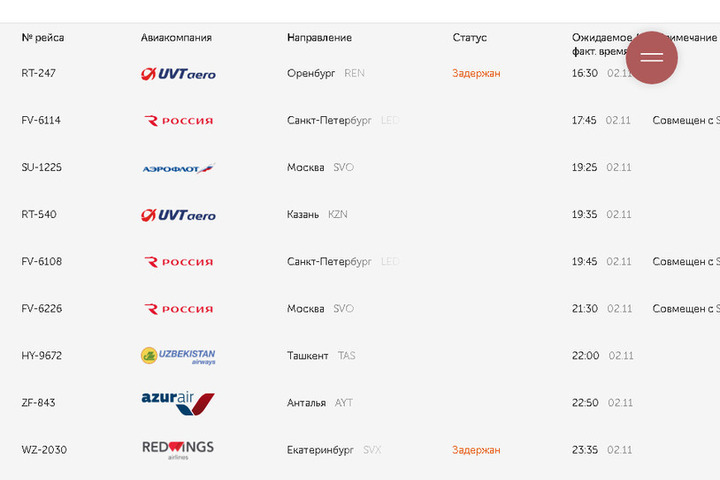 Задержки коснулись вылетов в Оренбург и Екатеринбург.