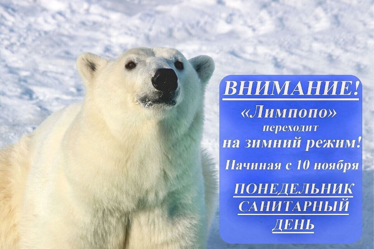 Согласно новому расписанию, «Лимпопо» будет открыт для посетителей со вторника по воскресенье, начиная с 9 утра и до 5 вечера. Администрация зоопарка предупреждает, что каждый понедельник, начиная с 10 ноября, будет проводиться санитарная обработка, поэтому посещение в этот день будет невозможно.