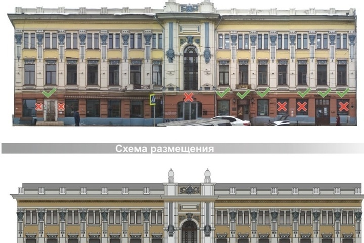 В частности, в документе прописаны требования к размещению и дизайну информационных объектов. Например, вводятся ограничения на палитру, шрифты и используемые материалы. Подвесные конструкции должны опираться на кованые опоры, а навесы должны быть изготовлены из металла с коваными элементами.