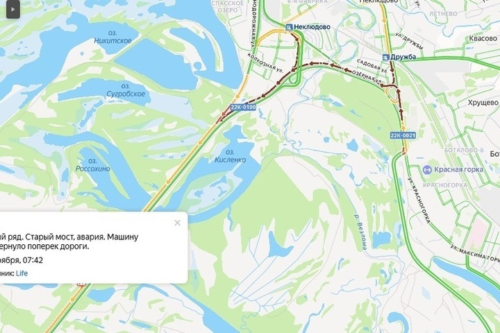 По данным сервиса «Яндекс.Карты», пробка тянется от железнодорожных платформ «Дружба» и «Неклюдово». Общая протяженность затора оценивается примерно в 7,5 километров.