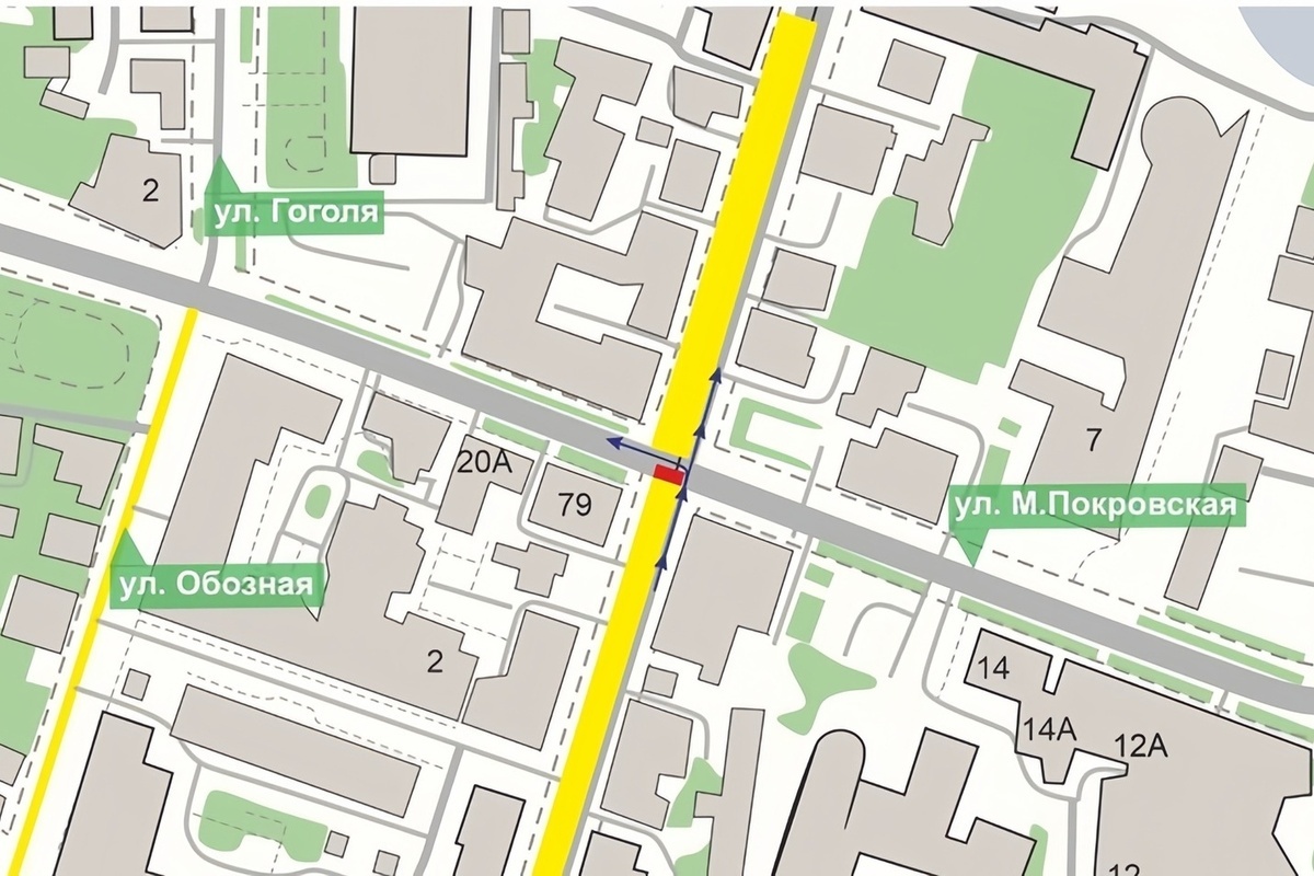 При этом, возможность совершить поворот налево с улицы Ильинской на улицу Малую Покровскую остался, однако ширина проезжей части в этом месте временно уменьшена.