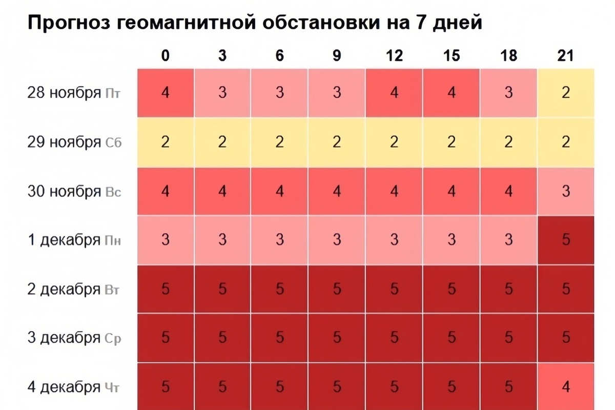 Уровень колебаний геомагнитного поля достигнет пяти баллов. Период магнитных возмущений продлится как минимум до 4 декабря.