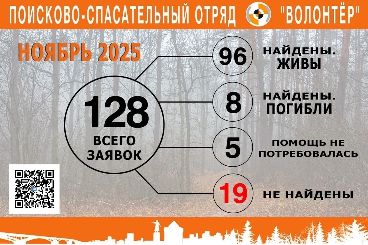 128 человек разыскивали участники поисково-спасательного отряда «Волонтёр» в Нижегородской области в ноябре.
