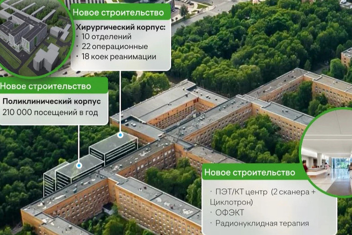 Медицинское учреждение должно включать в себя хирургическое отделение с круглосуточным (380 коек) и дневным (10 коек) стационарами, отделения диагностики и лабораторных исследований, аптечный пункт, поликлинику для взрослых пациентов с пропускной способностью 300 посещений в смену, а также столовую, конференц-зал и ряд других служебных помещений.
