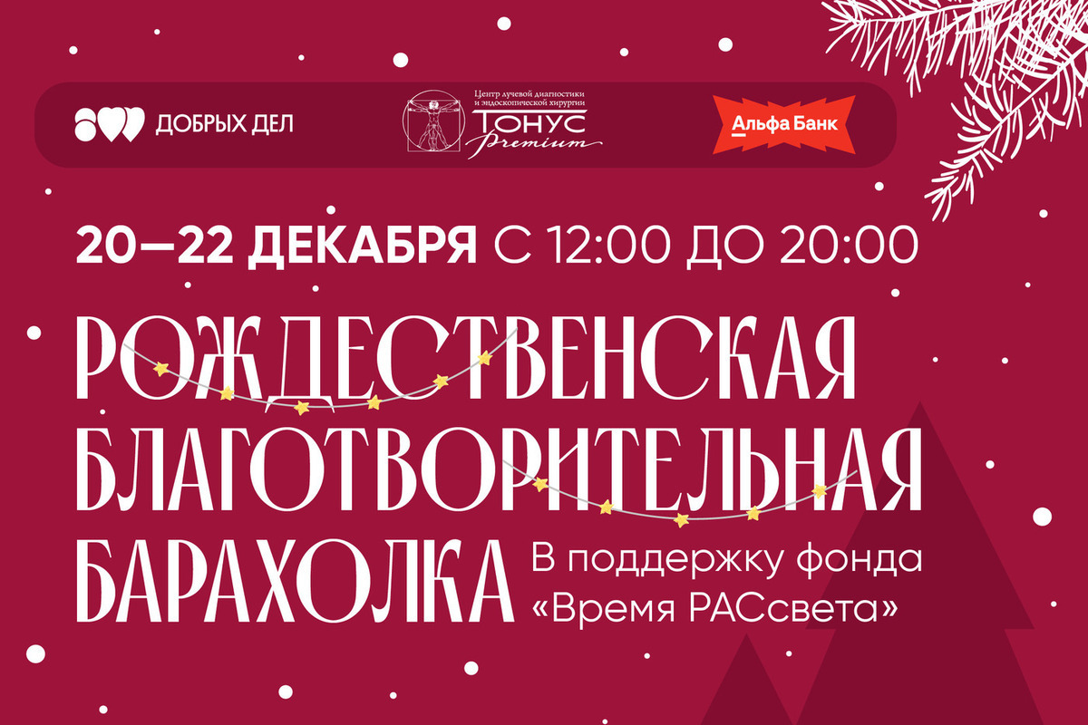 С 20 по 22 декабря включительно в Нижнем Новгороде, в ДК «Центр» по адресу ул. Большая Покровская, 20Б, пройдет предновогодняя благотворительная распродажа в помощь фонду «Время РАСсвета» и его маленьким подопечным с аутизмом (РАС). Барахолка будет открыта для посетителей ежедневно с полудня до 20:00.