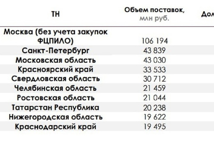 В период с января по ноябрь 2025 года лидирующие позиции в рейтинге государственных закупок медикаментов заняли Москва, Санкт-Петербург и Московская область. Нижегородская область заняла девятое место в общероссийском списке.