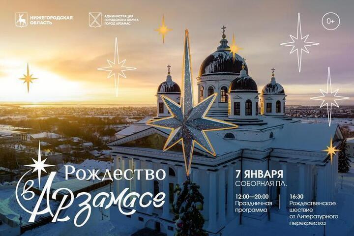 7 января Арзамас отметит наступление Рождества масштабным фестивалем. Центральным местом проведения станет Соборная площадь, где с полудня до восьми вечера развернется насыщенная развлекательная программа, рассчитанная на посетителей всех возрастов. В 16:30 от Литературного перекрестка стартует красочное рождественское шествие, которое завершится на Соборной площади.