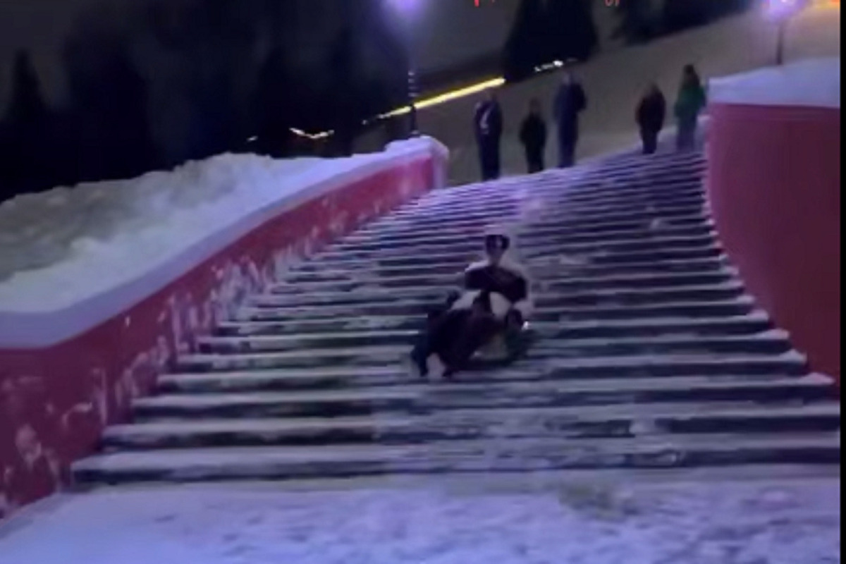 В Нижнем Новгороде группа подростков устроила катание на тюбингах с Чкаловской лестницы. Запись их рискованного развлечения была опубликована в Telegram-канале «112».