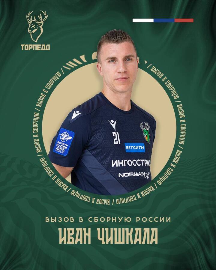 В мужскую сборную включен игрок команды «Торпедо» Иван Чишкала.