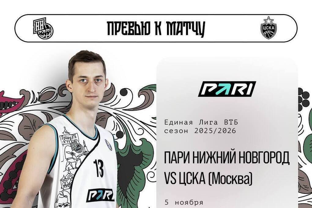Сегодня, 5 ноября, баскетбольная команда «Пари НН» проведет очередной матч домашней серии, принимая на своей площадке ЦСКА. Игра начнется в 18:45 в КРК «Нагорный», где подопечные Сергея Козина постараются дать бой сопернику.