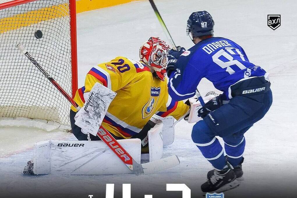 Однако, следом в воротах Дмитрия Дагестанского побывали две безответные шайбы и цифры на табло уже показывали преимущество подмосковного коллектива — 2:1.